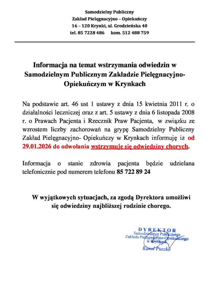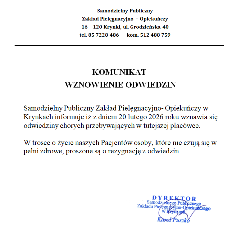 Samodzielny Publiczny Zakład Pielęgnacyjno – Opiekuńczy w Krynkach współrealizuje projekt pn „Zapewnienie bezpieczeństwa i opieki pacjentom oraz personelowi zakładów opiekuńczo-leczniczych, domów pomocy społecznej, zakładów pielęgnacyjno-opiekuńczych i hospicjów na czas Covid-19″